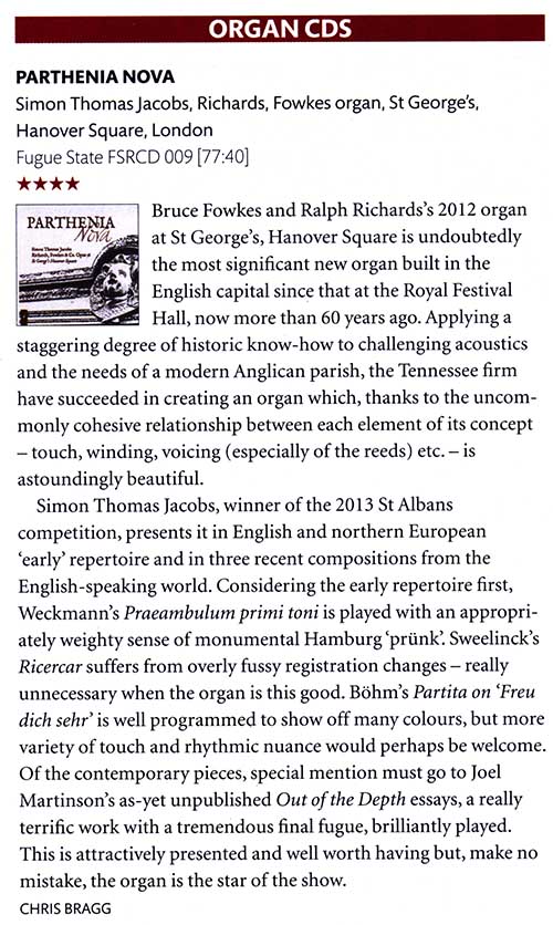 A special thanks to Simon Thomas Jacobs for his recording on the organ at St George’s, Hanover Square, London. The recording and the instrument are garnering some great reviews!