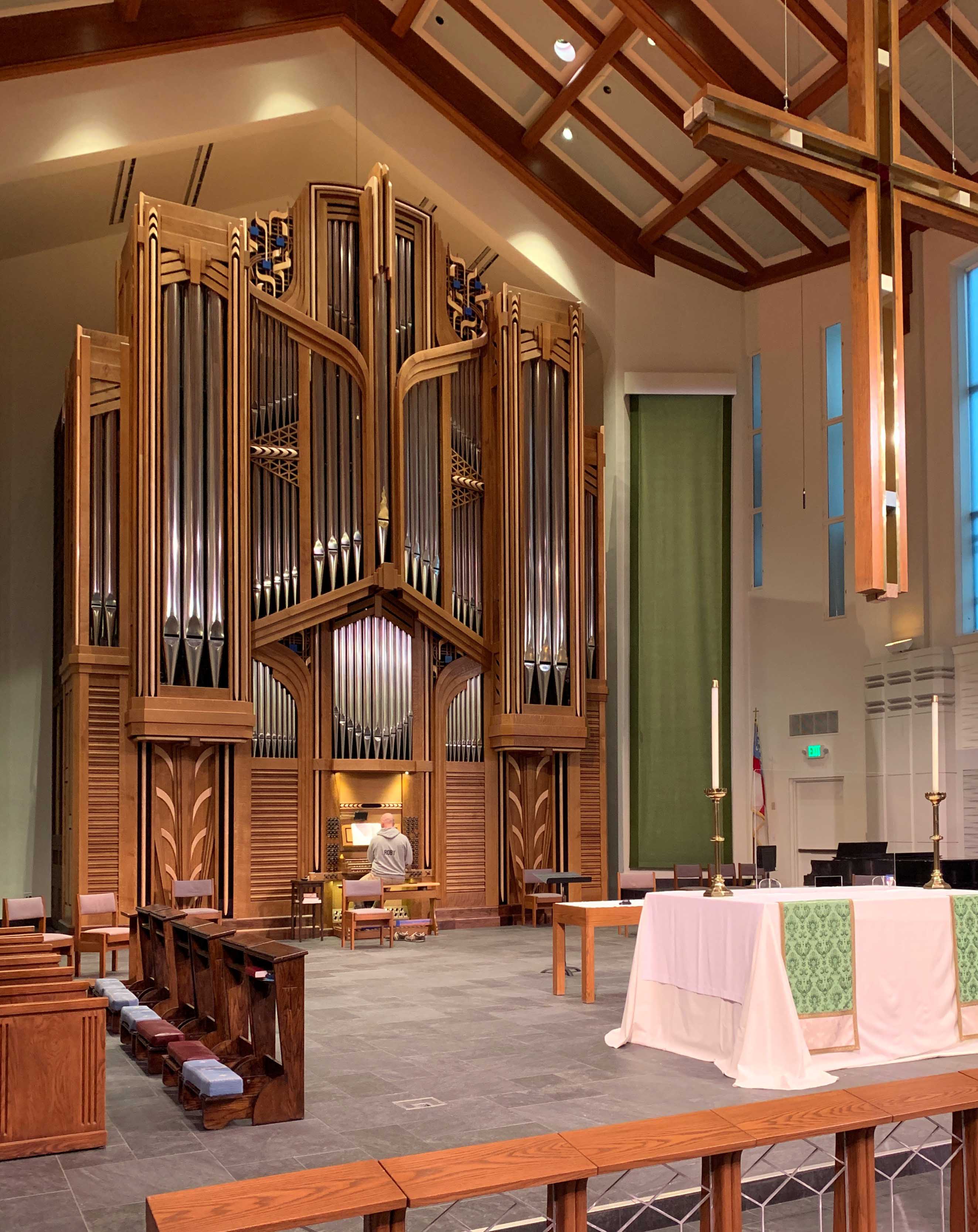Our organ at St. Andrew’s Episcopal in Ann Arbor has reached completion. Bruce Fowkes, Patrick Fischer, and David Kazimir have put the finishing touches on the final pipes. Here’s a short video of our friend David Kazimir sight-reading to demonstrate the organ.