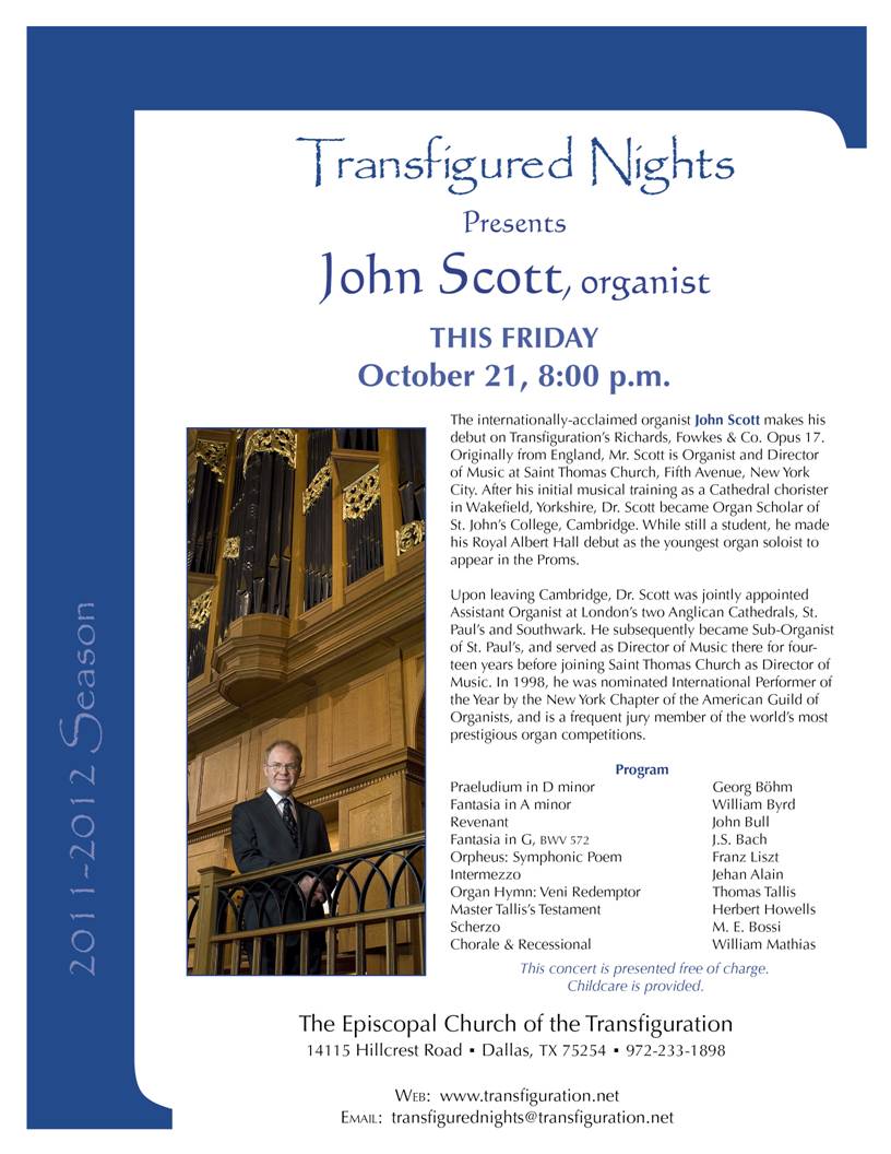 John Scott is Organist and Director of Music at Saint Thomas Church, Fifth Avenue, New York, since 2004, after holding a similar position at St. Paul’s Cathedral, London, for 14 years. He will perform a varied program of music exploring the tonal colors of the new organ. Program program pdf